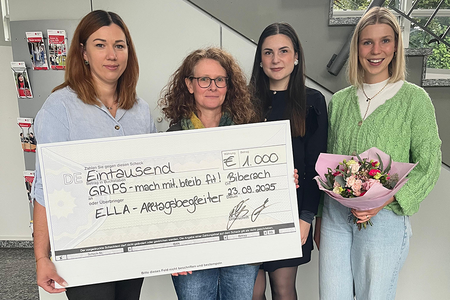 „Ella Alltagsbegleiter“ hat dem Bewegungs- und Gedächtnisprogramm „GRIPS – mach mit, bleib fit!“ eine Spende in Höhe von 1.000 Euro übergeben.