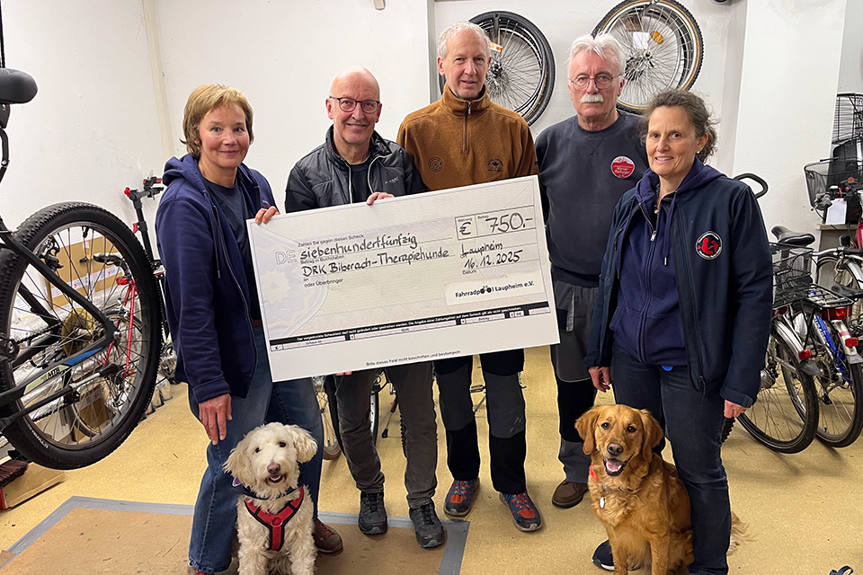 Über eine Spende in Höhe von 750 Euro durften sich die Therapiehunde des DRK-Kreisverbands Biberach freuen. Überreicht wurde der Betrag vom Fahrradpool Laupheim, der sich seit vielen Jahren ehrenamtlich für Geflüchtete und Bedürftige engagiert. Die Spende soll die Ausbildung neuer Therapiehundeteams sowie Fortbildungen bestehender Teams unterstützen.