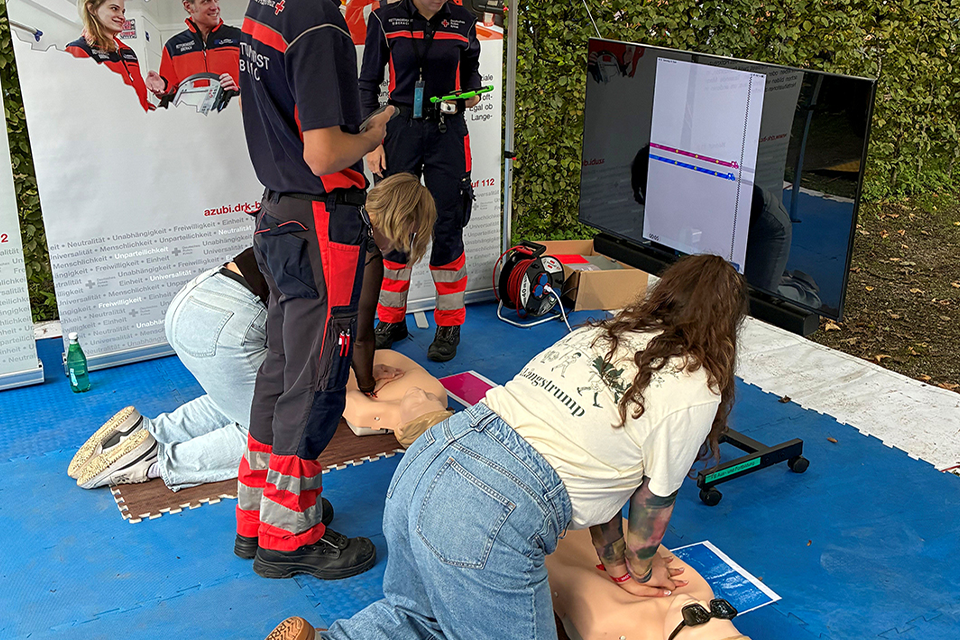 Besonders beliebt war die Reanimationsübung: Hier zählte nicht die Geschwindigkeit, sondern die Effektivität – die besten Teilnehmenden erhielten kleine Preise. Insgesamt nutzten rund 400 Festivalbesuchende die Gelegenheit, ihr Wissen und Können praxisnah zu testen.