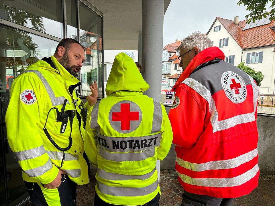 Die heftigen Regenfälle haben im Landkreis Biberach am Samstag für zahlreiche Überschwemmungen gesorgt. Mit am stärksten betroffen ist Ochsenhausen, wo die Rottum an vielen Stellen über die Ufer getreten ist. Kreisweit sind insgesamt sechs DRK-Bereitschaften (Ummendorf, Ochsenhausen, Schwendi, Biberach und Bad Buchau) sowie der Einsatzführungsdienst aus Riedlingen mit Leitendem Notarzt und Organisatorischem Leiter Rettungsdienst mit insgesamt rund 50 Personen im Einsatz.